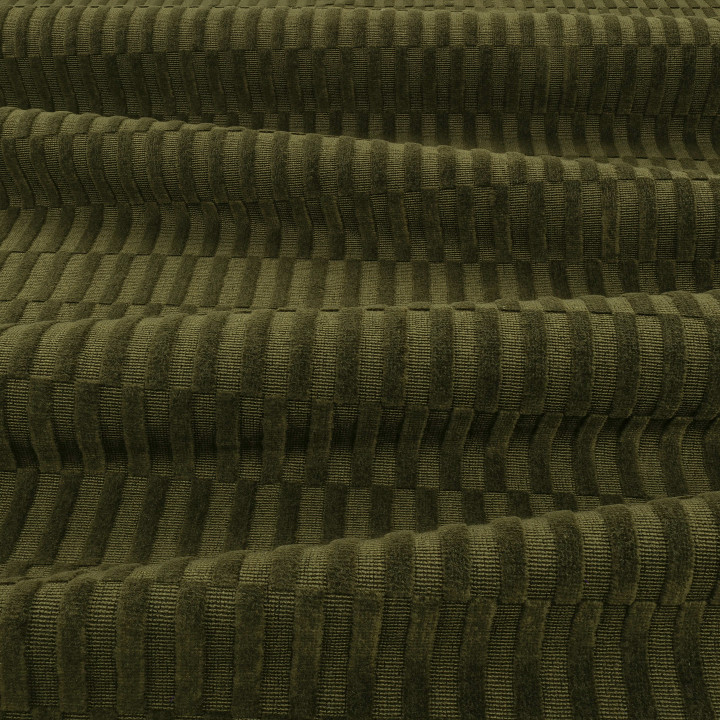 A relative of the checkerboard family; this three-dimensional rectangular geometric is created by a cut and uncut velvet woven from a blend of cotton and linen. The combination of these natural fibres gives the cloth a dry feel and matt appearance, offering a contrast to many other Zinc velvets.