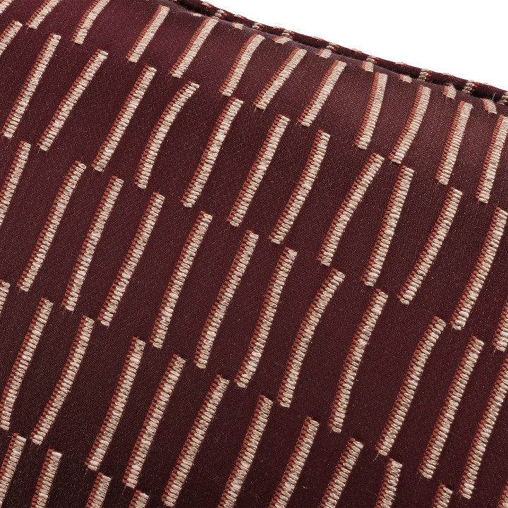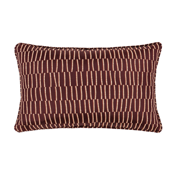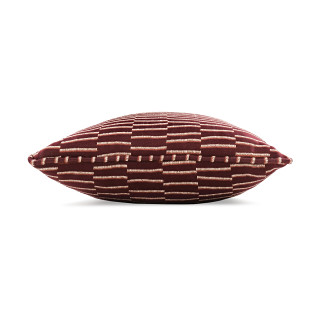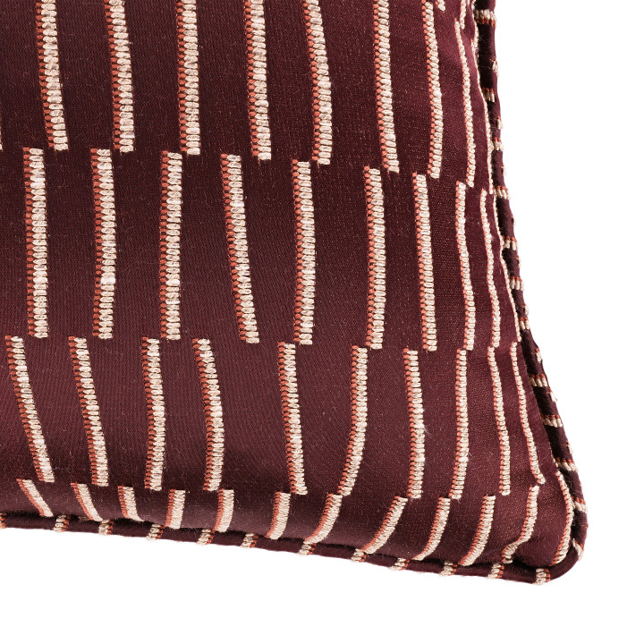 Asymmetrische Linienbänder scheinen sich über das glatte Jacquard-Gewebe mit sanftem Schimmer zu bewegen. Erdige Farbkombinationen und Ton-in-Ton Garne verleihen diesem eleganten Kissen einen subtil rustikalen Charakter.