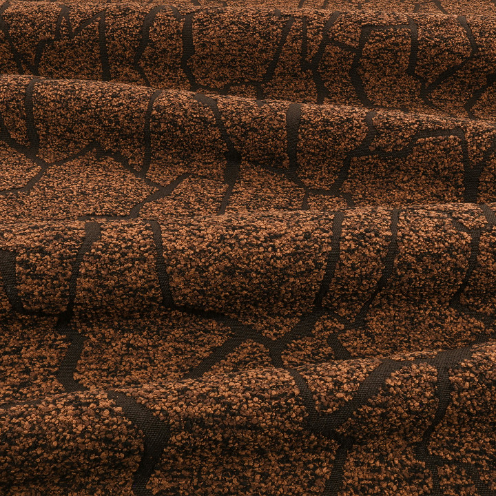 Hermana del tejido para interiores Gion FR, esta interpretación para exteriores representa el mismo patrón distintivo que recuerda a la madera carbonizada. Un hilo bouclé lleno de carácter salpica la superficie, dando la ilusión de que el diseño se despega de la tela.