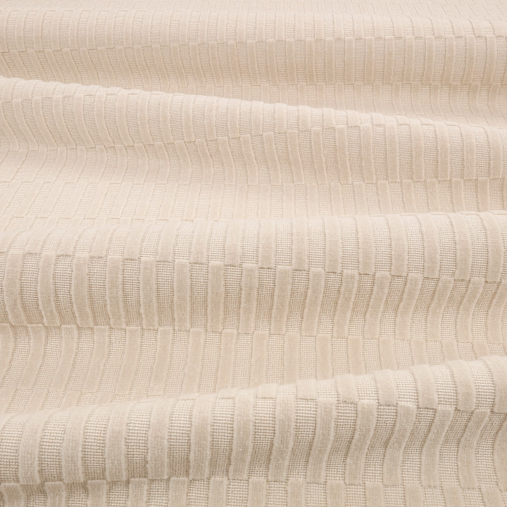 Un pariente de la familia de tablero de ajedrez, este tejido geométrico rectangular tridimensional está creado por un terciopelo cortado y sin cortar, tejido a partir de una mezcla de algodón y lino. La combinación de estas fibras naturales le da al tejido un tacto seco y un aspecto mate, lo que ofrece un contraste con muchos otros terciopelos de Zinc.
