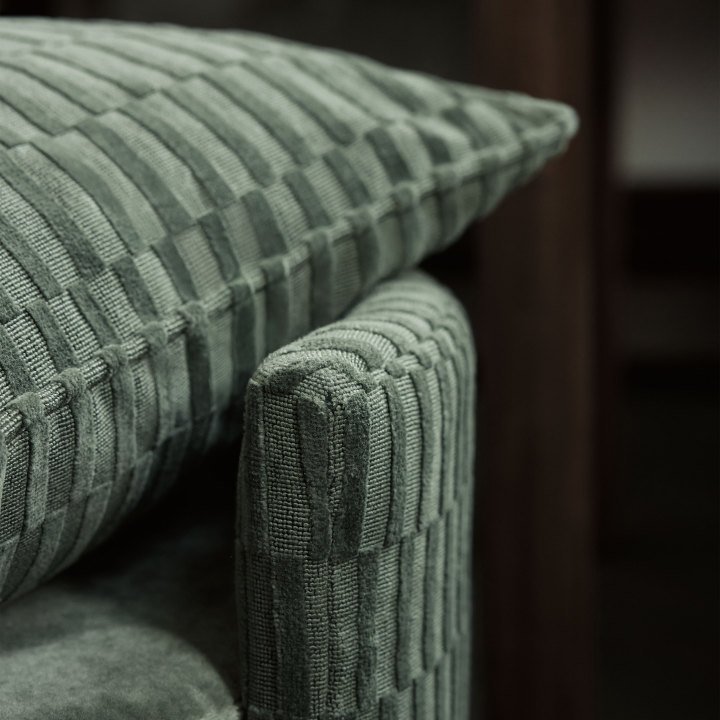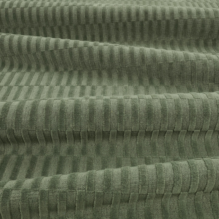 Un pariente de la familia de tablero de ajedrez, este tejido geométrico rectangular tridimensional está creado por un terciopelo cortado y sin cortar, tejido a partir de una mezcla de algodón y lino. La combinación de estas fibras naturales le da al tejido un tacto seco y un aspecto mate, lo que ofrece un contraste con muchos otros terciopelos de Zinc.