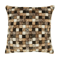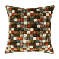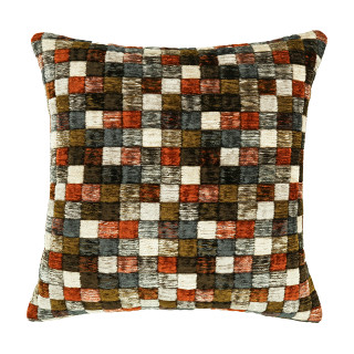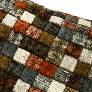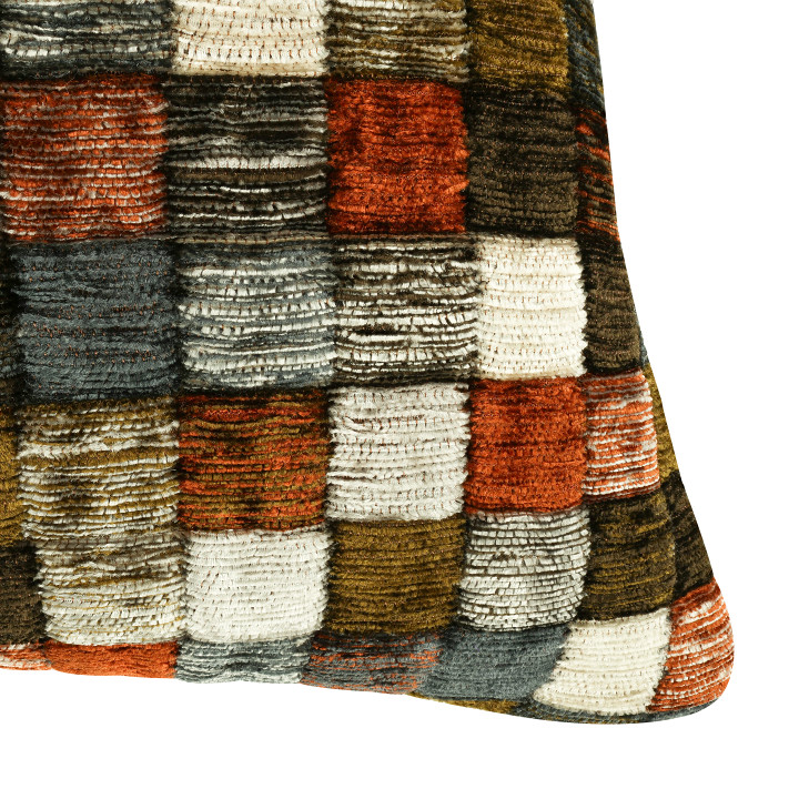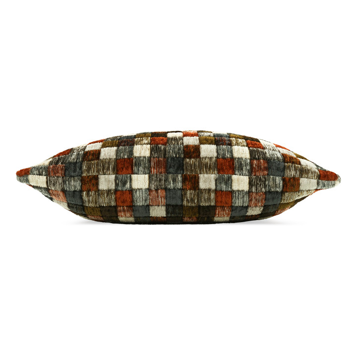 Campden – pronunciato con la “p” muta – è ispirato alle piastrelle di una piscina e si presenta come una coperta di quadrati colorati che formano un vivace disegno a mosaico. Il pelo in ciniglia dona profondità e movimento alla superficie, creando un effetto trapuntato e tridimensionale che rende il cuscino tutt’altro che piatto.